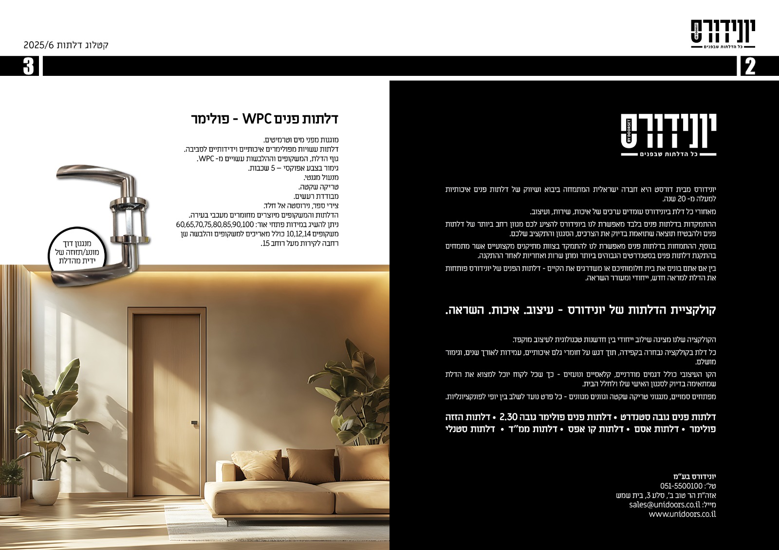 כל דלת בקולקציה נבחרה בקפידה, תוך דגש על חומרי גלם איכותיים, עמידות לאורך שנים, וגימור מושלם.